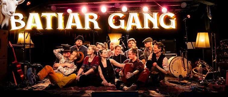 Die Batiar Gang – das ist ein einzigartiges leipziger Kollektiv aus einzigartigen, mehrstimmigen Gesängen Südosteuropas, schmetterndem Gebläse von Trompeten, Saxophonen und Klarinette, zwei artistischen Akkordeons, funzigem Bass und einem wuchtigen Schlagzeug mit viel BummBumm, vor und auf der Bühne. Es wird getanzt und geschwitzt zu einem unverwechselbaren Borschtsch aus Liedern der wilden Bandgeschichte, entstanden unterwegs in Serbien, Bosnien, Mazedonien, Bulgarien, Rumänien und der Ukraine oder mit viel Fernweh im heimischen Proberaum.