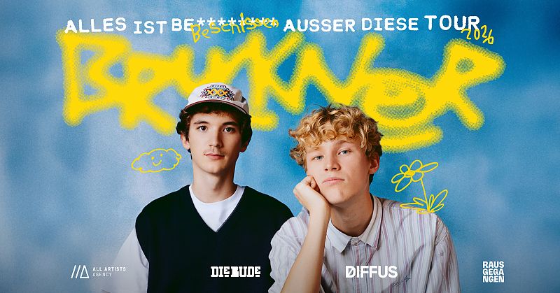 ALLES IST BESCHISSEN AUSSER DIESE TOUR! ALLES IST BESCHISSEN AUSSER DIESE TOUR! Mit diesem Titel kündigen Bruckner ihre Rückkehr an und wer die Brüder aus Bayern kennt, weiß: Das ist kein Understatement. Im Oktober 2026 ziehen die beiden für zehn Shows endlich wieder durch Deutschland.